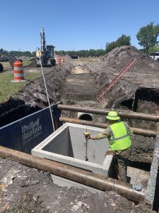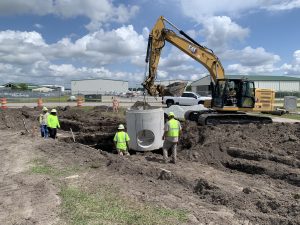 The project consisted of furnishing all labor, materials, and equipment for performing all work required to satisfactorily complete the access roads and parking lot additions for Wilmington International Airport. Items of work included erosion and sediment controls measures; earthwork; asphalt and concrete demolition; storm drainage; split steel casings on existing utility lines; concrete pavement, curb & gutter, sidewalks, asphalt roadways and parking lots.