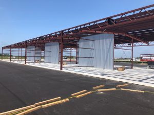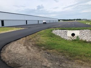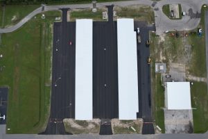 The project consisted of furnishing all labor, materials, and equipment and performing all work required to satisfactorily complete the T-HANGARS AND TAXILANES project. Items of work include erosion and sediment control; earthwork; pavement removal; aggregate placement; asphaltic paving; drainage pipe and structure installation; water line relocation; and sodding, seeding, and mulching. Also included in the project is the construction of new hangar foundations/slabs, erection of two 14-unit T-hangars, and electrical infrastructure installation.