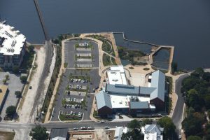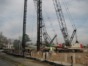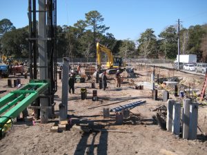 This project consisted of providing all labor, equipment, materials, and supervision to complete a 61,624 SF new construction package for exhibits, shops and meeting places. Work included clearing & grubbing; installing and maintaining erosion control devices for denuded areas, stockpiles; excavating/backfilling for buildings, structures, and concrete retaining walls; installing rebar and structural steel; conducting field engineering; Surveying; maintaining temporary access points; implementing and maintaining traffic control measures; dewatering; demolition of existing structures/roadway; conducting pile driving; installing foundation drain lines & rerouting storm drain lines, structural concrete for buildings; installing steel H piles & pile caps; furnishing and installing all helical piers under site retaining walls; furnishing and placing all rigid insulation behind walls; building rain gardens for landscaping mulch; installing concrete curbs; and installing liquid floor treatments to exposed concrete floors and stairs.
