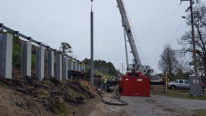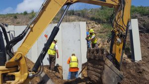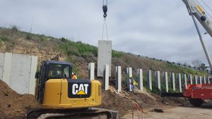 This project consisted of constructing, as a rehabilitation project, a solider pile retaining wall (508 LF) with H-piles and precast wall panels. More specifically: 5293 SF of soldier pile retaining walls, #57 stone placement, class B Rip rap placement, and all necessary erosion control items