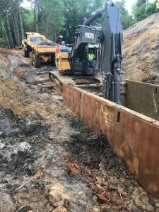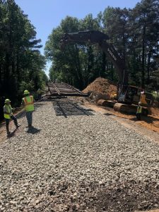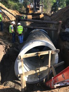 This project included all labor, equipment, materials, and supervision to perform dewatering, mass excavation, shoring and installation of 96 LF of 84” reinforced concrete pipe under active railroad. Precise coordination and 24-hour operations of several different crews were required to install the 84” culvert within a 72-hour shutdown window.