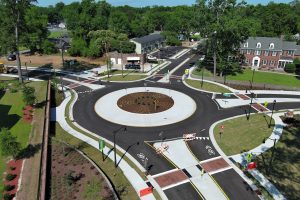 This project encompassed the complete reconstruction of over 1.1 miles of roadway through the heart of downtown Greenville. Work included all labor, equipment, materials, and supervision necessary to deliver a complex urban infrastructure upgrade. Key components of the project included the construction of two roundabouts, six signalized intersections, a soldier pile retaining wall, multiple segmental retaining walls, major utility relocations, and the installation of new storm drainage, water mains, and sewer mains. Additional improvements included new curb and gutter, sidewalks, lighting, landscaping, and other hardscape features. Due to its location, the project required heightened attention to access, safety, and coordination with local business owners and the traveling public.